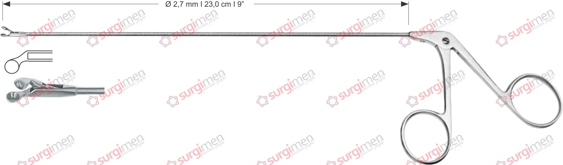 Endolaryngeal Micro Cup-shaped forceps, curved left Ø 4,0 mm , 23,0 cm , 9”