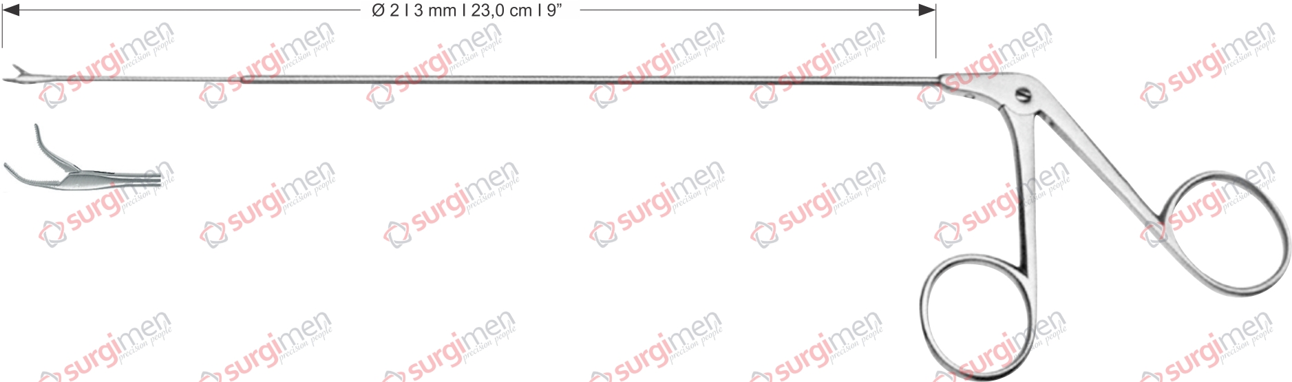 Endolaryngeal Micro Grasping forceps, curved upwards Ø 2 , 3 mm , 23,0 cm , 9”