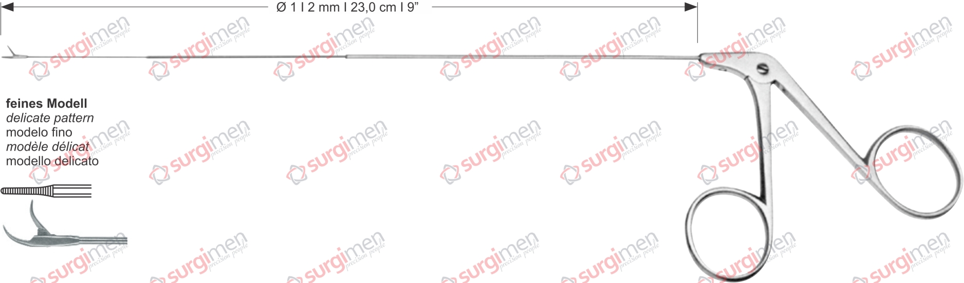 Endolaryngeal Micro Grasping forceps,curved upwards delicate pattern Ø 1 , 2 mm , 23,0 cm , 9”