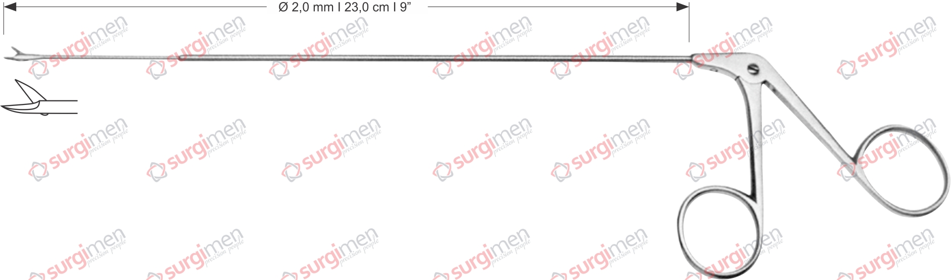 Endolaryngeal Micro Scissors, straight, horizontal opening Ø 2,0 mm , 23,0 cm , 9”