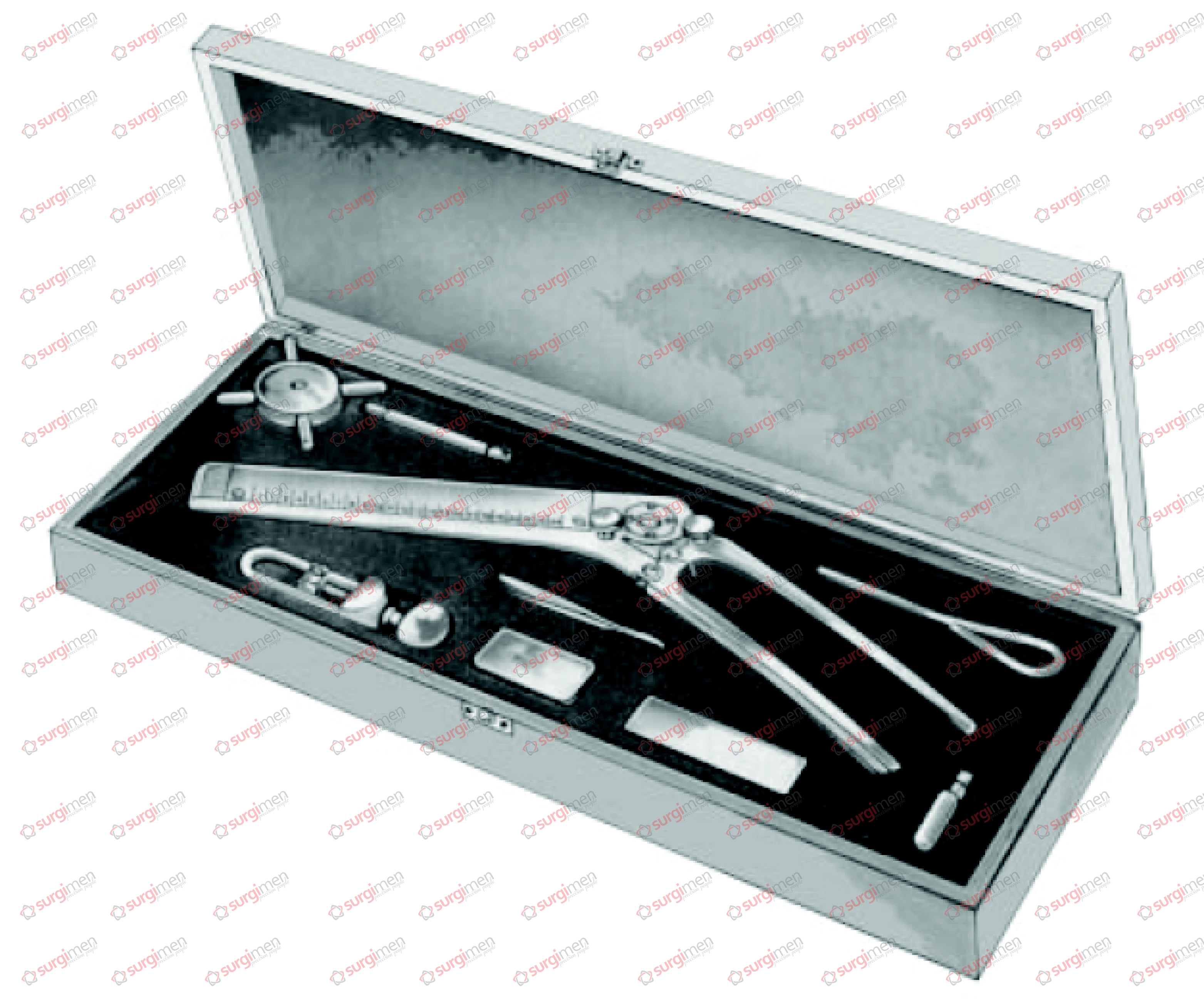VON PETZ Stomach and intestinal suturing apparatus, complete, consisting of: 30-370-01 1 Suturing apparatus for 23 pairs of suturing clips 30-370-02 1 Filling tweezer 30-370-03 1 Filling pin 30-370-04 1 Filling rack 30-370-05 1 Additional closing clamp 30